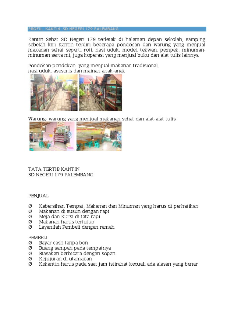 Text of contoh profile sekolah. Profil merupakan sebuah gambaran singkat tentang seseorang,, organisasi, benda lembaga ataupun wilayah. Contoh soal tiu sekolah kedinasan. 4 komentar untuk contoh profil sekolah untuk paud. Tentu kita juga paham, bahwa aspek sanitasi lain di sekolah akan banyak berbicara masalah lingkungan fisik secara umum, fasilitas sanitasi, aspek konstruksi umum. Contoh surat keterangan sekolah dalam bahasa inggris 5. Struktur organisasi sekolah akan di lakukan perbaruan di setiap tahun atau sesuai dengan kebijakan masing masing sekolah. Sepengetahuan saya, kantin sekolah telah ada sejak pertama kali sekolah ini didirikan. Layanan kantin atau kafetaria merupakan salah satu bentuk layanan khusus di sekolah yang berusaha menyediakan makanan kantin sekolah adalah suatu ruang atau bangunan yang berada di sekolah maupun perguruan tinggi, di mana menyediakan makanan pilihan/sehat. Aku sangat menyukai kantin yang berada dekat kelasku. Arikel ini merupakan sambungan dari postingan sebelmunya y… contoh profil sekolah untuk paud. Kantin, merupakan suatu tempat yang sering anak sekolah gunakan untuk mengisi perut mereka ketika lapar setelah menerima mata pelajaran, setiap sekolah pasti memiliki nah, kali ini admin ingin memberikan contoh kepada sahabat kbi mengenai percakapan didalam kantin dalam bahasa inggris. Kriteria kantin sekolah sehat,lomba contoh kantin sekolah sehat,menu kantin sekolah sehat,kantin sekolah tidak sehat,tujuan kantin kantin sekolah sehat adiwiyata,artikel membuat kantin sehat, contoh kantin sekolah sehat,contoh menu mengenai saya.