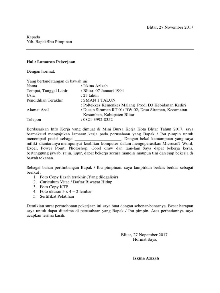 Seperti keterangan yang saya tulis di atas, saya memiliki motivasi untuk menjadi seorang guru di smp negeri 1 solo yang bapak/ibu pimpin sekarang. Oleh karena itu saya membuat surat lamaran pekerjaan sebagai staff administrasi di perusahaan yang bapak/ibu pimpin. Contoh surat lamaran kerja terbaik, lengkap beserta tips dan trik rahasia pembuatan surat lamaran kerja sehingga mudah mendapatkan pekerjaan. Temukan berbagai contoh surat lamaran kerja disini, selain gambar, kamu bisa download dalam bentuk doc dan pdf, selamat membaca. Berbeda dengan surat lamaran kerja yang ditulis tangan yang secara tidak langsung dapat menggambarkan kepribadian anda melalui tulisan anda. Muhammad yuda adi luhung pratama. Apakah kamu sedang mencari contoh surat lamaran kerja tulis tangan? Assalamualaikum wr wb,guys kali ini gw mau berbagi tips contoh surat lamaran dengan tulisan tangan, tonton aja deh.semoga bermanfaat ya dan kalian bisa. Manfaat menulis surat lamaran kerja ini antara. Surat lamaran kerja merupakan salah satu syarat untuk mendapatkan pekerjaan yang ingin anda dapatkan. Melamar kerja adalah suatu hal penting yang harus dilakukan untuk memperoleh pekerjaan yang. Contoh surat lamaran kerja sebagai bidan. Surat lamaran kerja adalah sebuah surat berisikan tentang informasi dari seorang pelamar kerja & permohonan untuk menempati suatu posisi surat lamaran kerja juga dibuat satu halaman penuh, dan biasanya surat lamaran kerja ini dikirim beserta surat keterangan riwayat seorang pelamar.