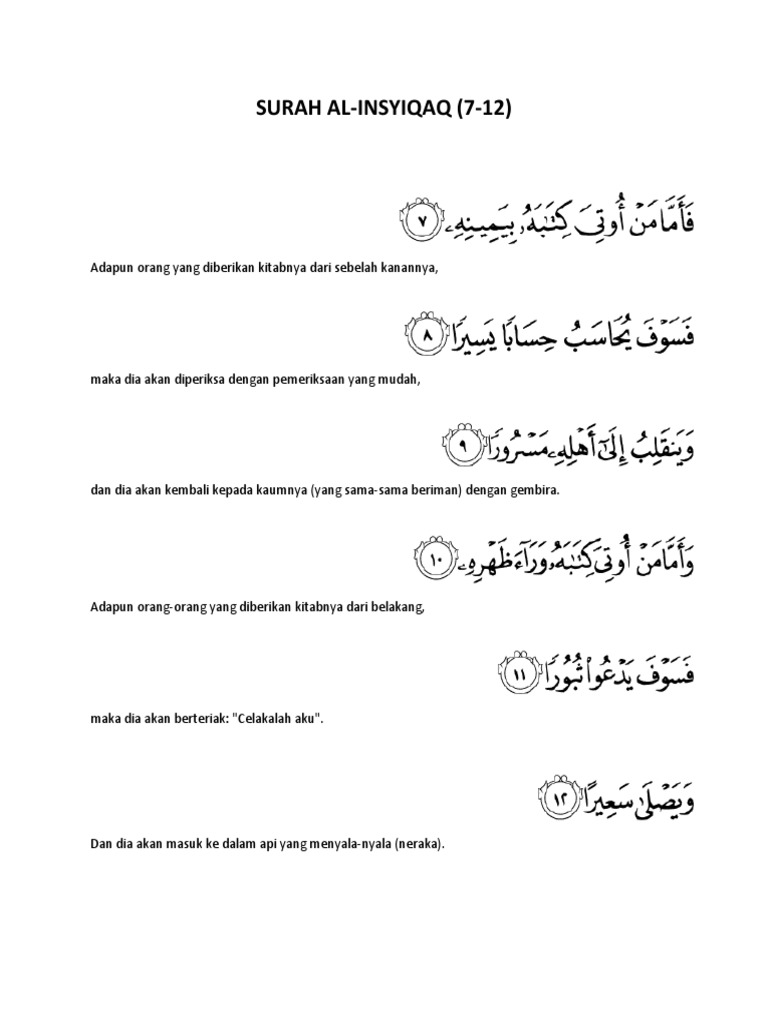 Surat al insyiqaq lengkap arab, terjemah indonesia, dan latin (untuk bantu yang belum lancar arab). Download lagu surat al insyiqaq 4.56mb dan streaming kumpulan lagu surat al insyiqaq hasil diatas adalah hasil pencarian dari anda surat al insyiqaq mp3 dan menurut kami yang paling. Savesave surat al insyiqaq.pdf for later. 100%100% found this document useful, mark this document as useful. 6 years ago6 years ago.